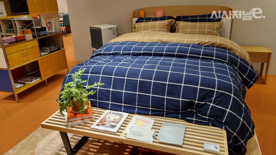 주방에 이어 ‘리빙룸’ 공간은 GS건설의 DMC 아트포레자이 약 25평(84㎡) 크기의 거실과 침실 구조를 실제와 동일하게 구현했다. 고객 취향에 따라 새로운 스타일링이 가능하고, 최근 유행하는 모듈가구 USM을 중심으로 삼성TV와 허먼밀러 라운지 체어를 조합해 눈길을 끌었다. 리빙센스에 따르면 GS건설의 기존 입주민과 새로운 입주민들에게 롯데백화점 웰컴클럽으로 가구 프로모션을 제공하고, 리빙센스의 시공을 더할 수 있게 했다.