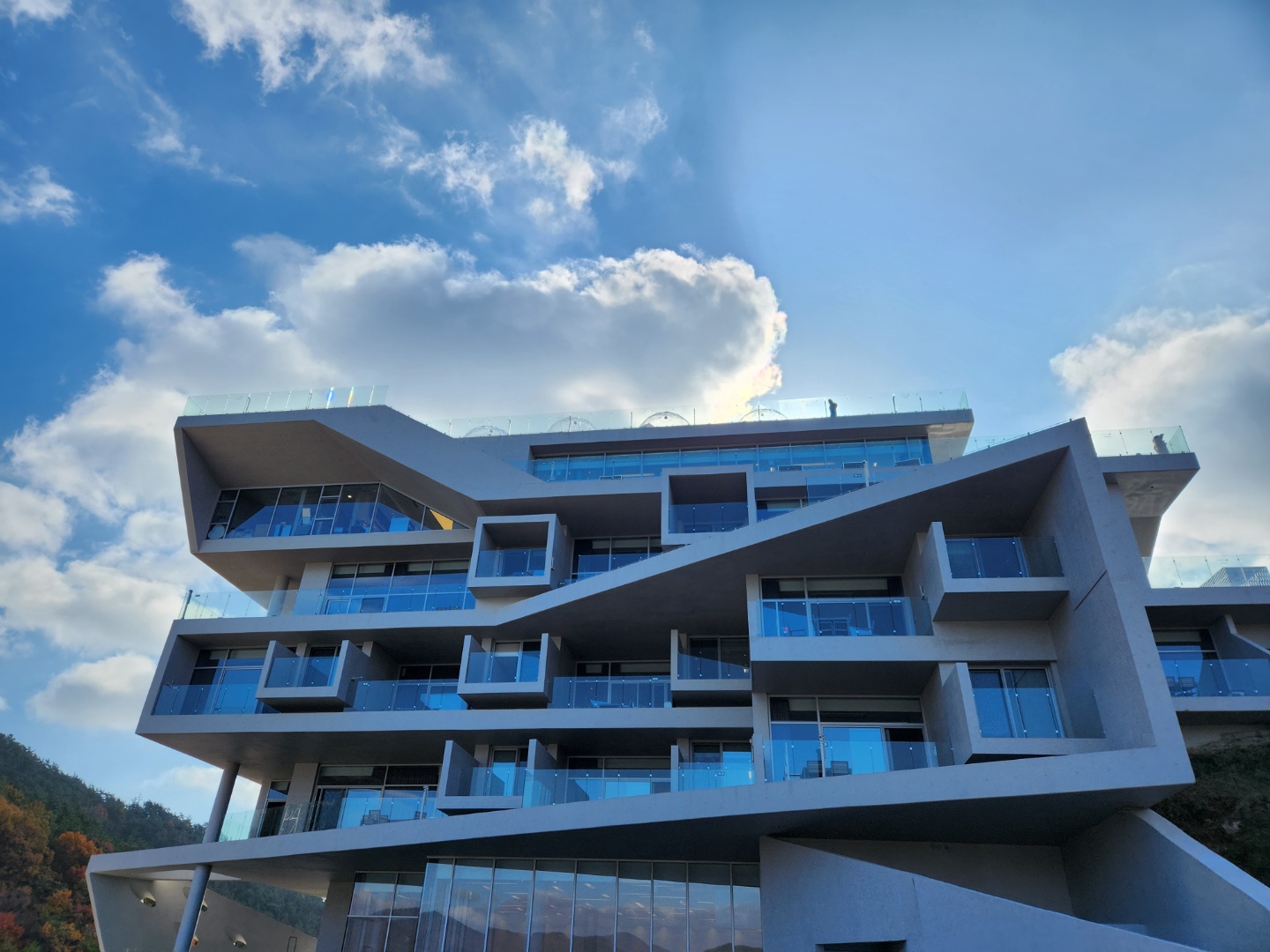 독특한 건물 외부 디자인과 자연 경관을 감상할 수 있는 여수의 명소 '포트앤포트 리조트'